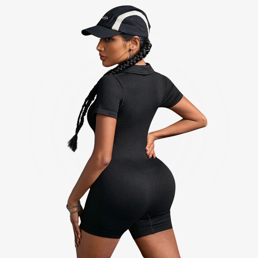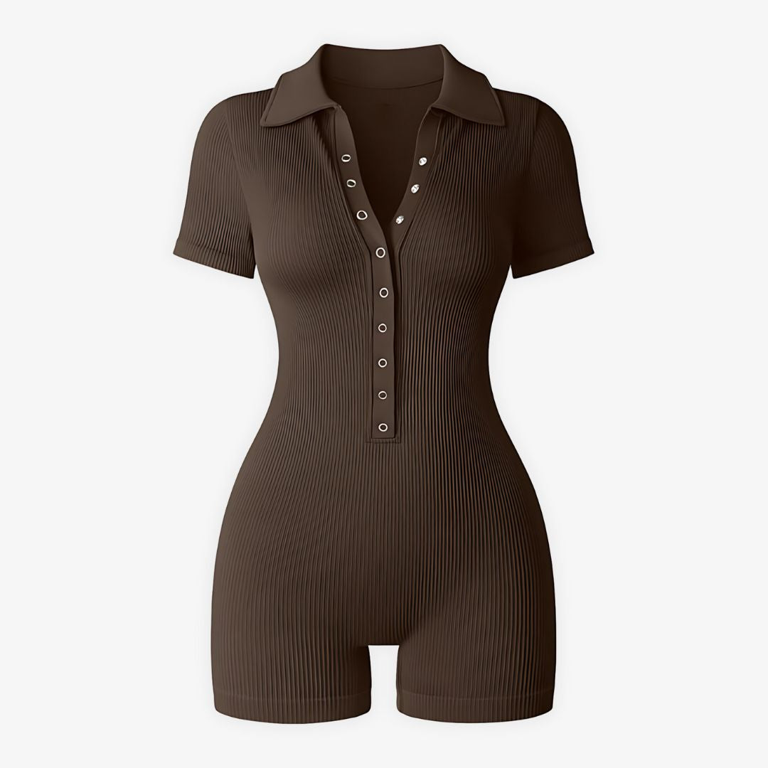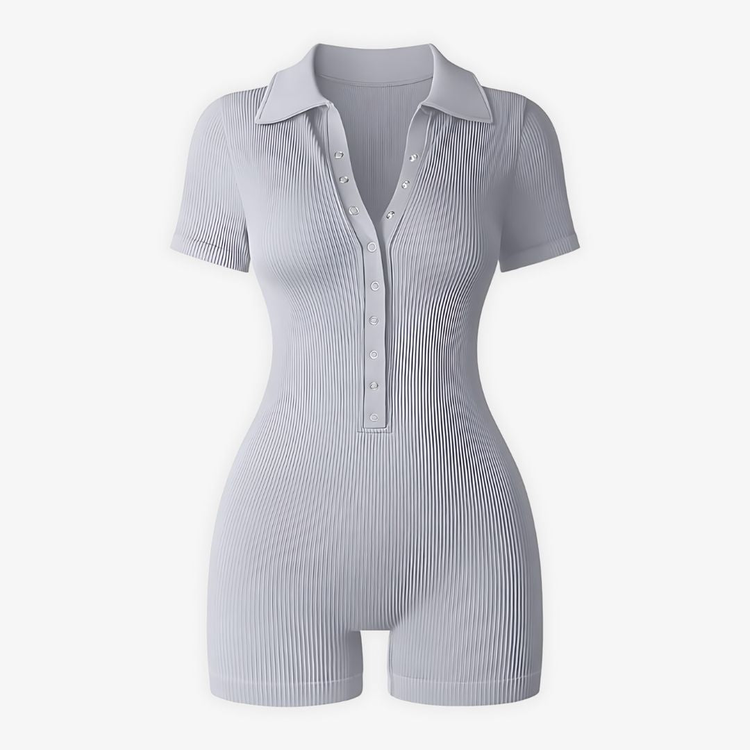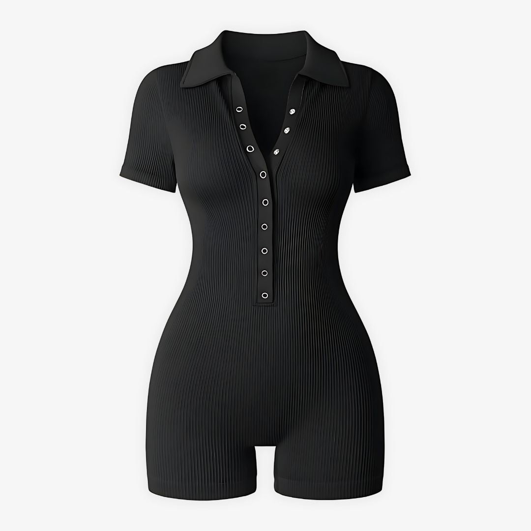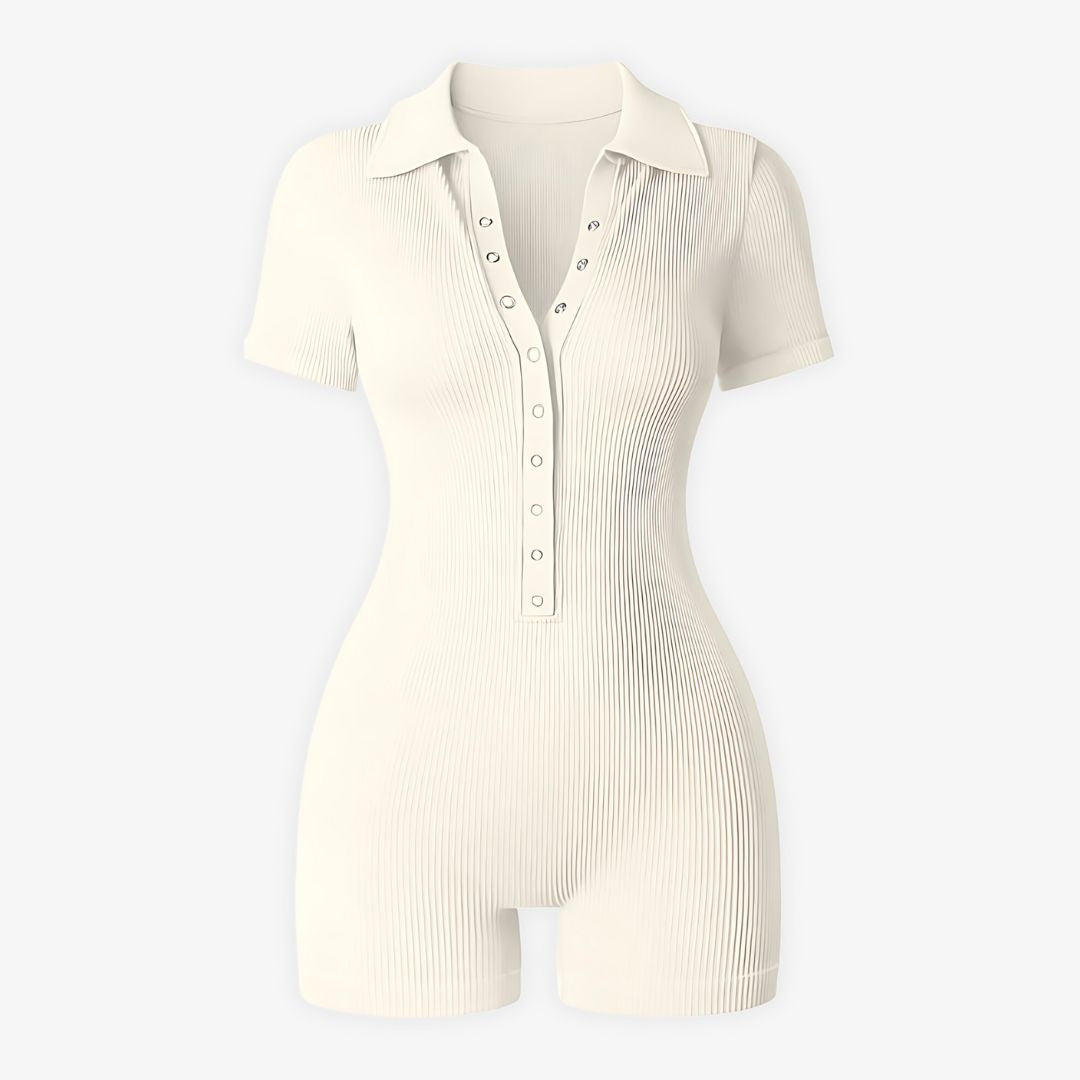 Crafted from premium, ribbed textured fabric, the ShapeChic™ Shaping Polo Romper is designed to offer the best in style and functionality.